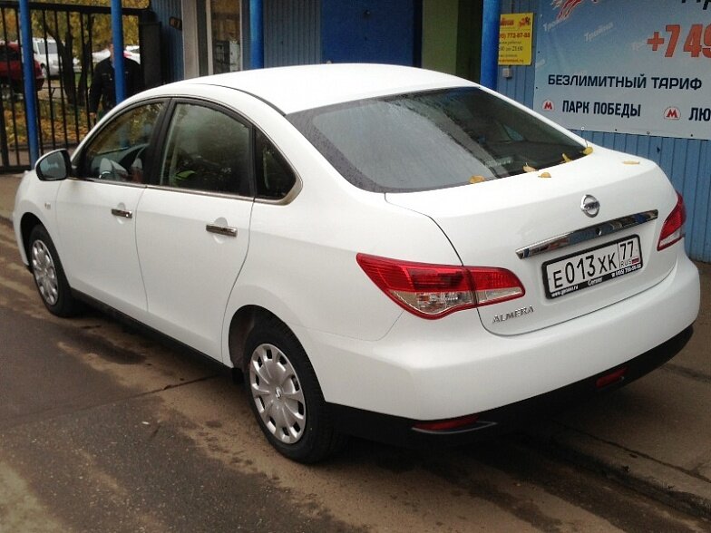 Московская прокатная компания «АрендаАвто-еск» предлагает взять в аренду Nissan Almera IV MT белого цвета с механической коробкой передач по низкой цене.